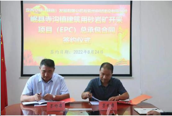 | 8月24日上午,定西交投(岷縣)發(fā)展有限公司與兗州中材建設(shè)有限公司簽署岷縣寺溝鎮(zhèn)建筑用砂巖礦開采項(xiàng)目(EPC)總承包合作協(xié)議,在岷縣投資建設(shè)綠色、環(huán)保礦石開采加工生產(chǎn)線。